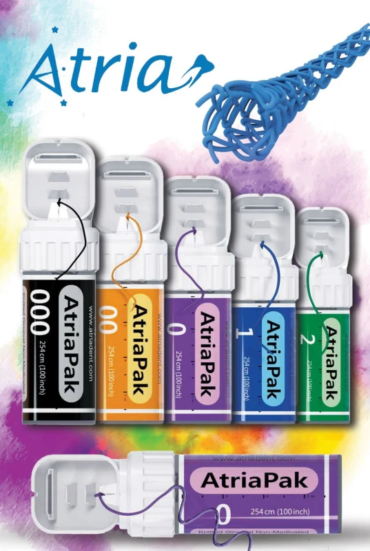 Atriapak cords are used in the retraction of the gingival tissue around the tooth.