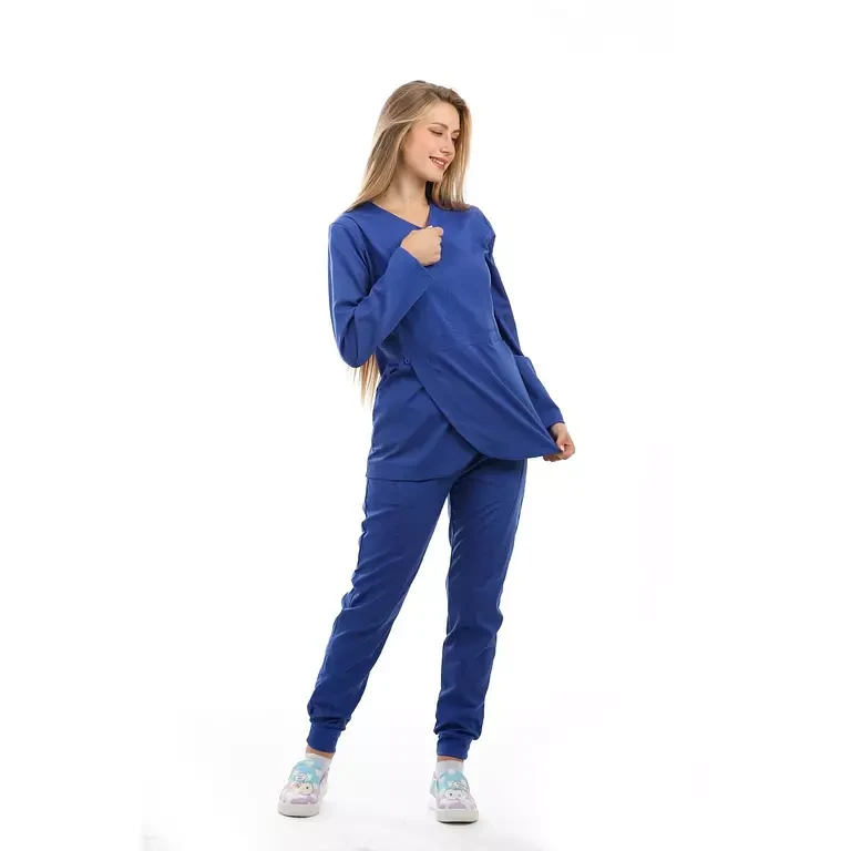 المزايا: سكراب علوي من قماش الليكرا على شكل زهرة التيوليب , جيوب امامية , سحاب على الصدر غير مرئي ,  مريح جدًا للأطباء الذين يعملون بجهد , تصميم سروال فاخر يتميز بجيبين أماميين , اساور مطاطية في القدم بشكل جمالي