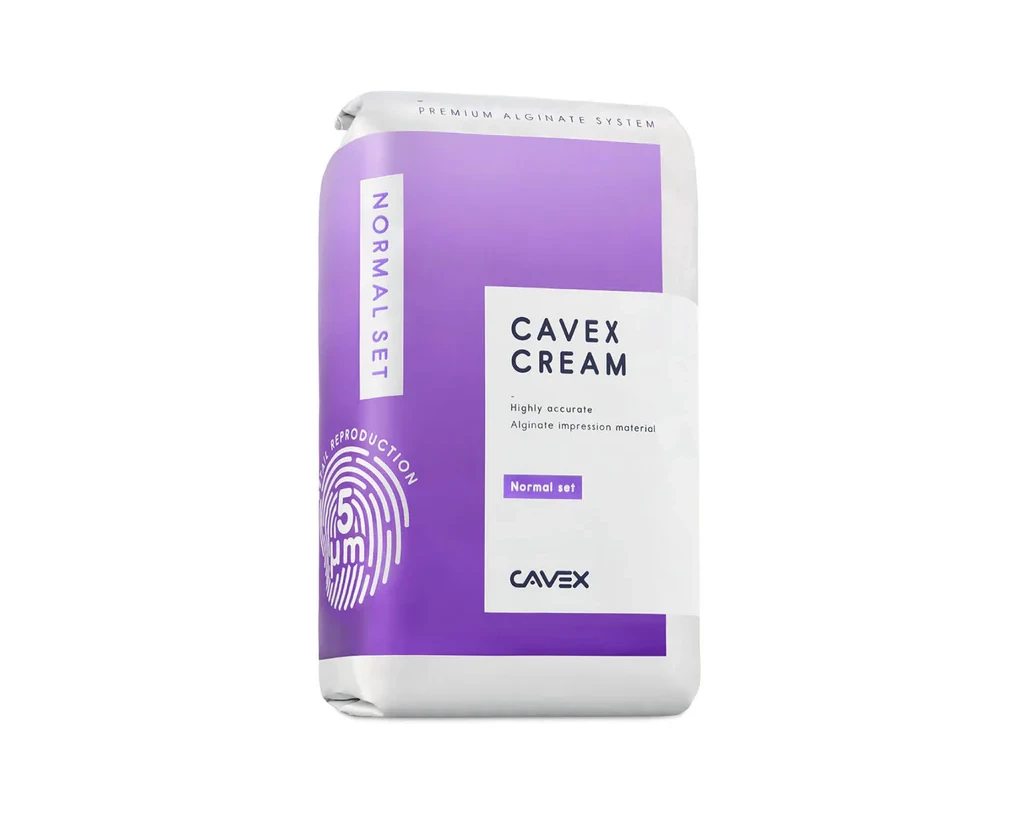 Cavex cream alginate is a dust-free, alginate impression material designed to be easily mixed to a smooth, creamy consistency.