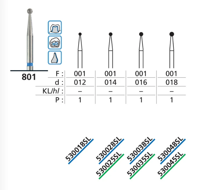 High-speed FG diamonds are available in standard FG shank, in FG short shank, and for some items in long shank. In addition, DFS Diamon manufactures FG diamond burs for minimally invasive applications and FG Turbo diamonds with spiral. FG Turbo diamonds are primarily used in crown and cavity preparation.