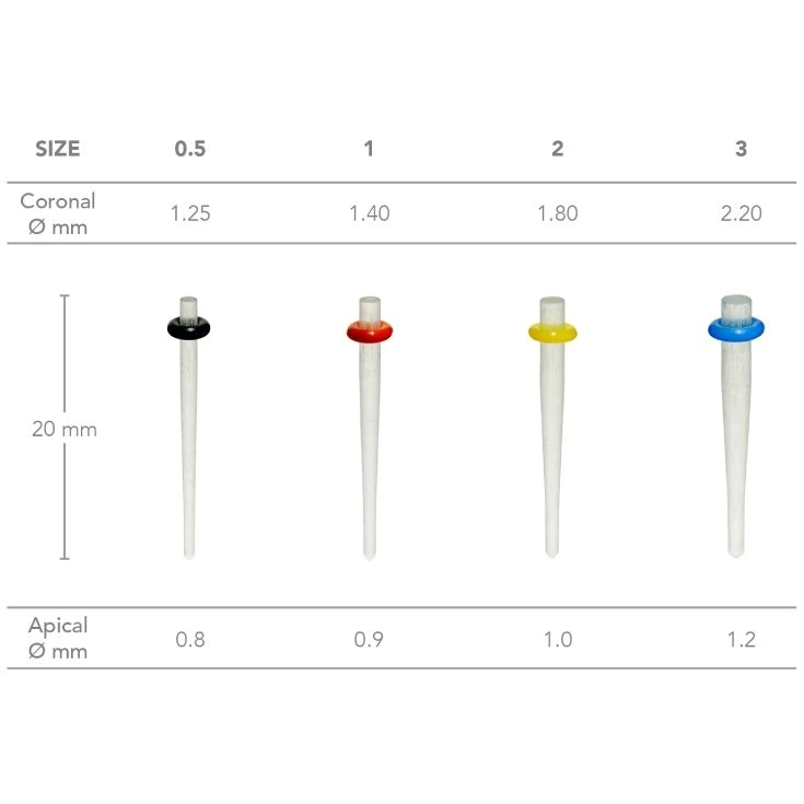 The D.T. Light-Post is an advanced fiber post with a high level of flexural strength, light transmission, and radiopacity. The double-tapered profile allows a less invasive canal preparation, preserving as much dentine as possible.