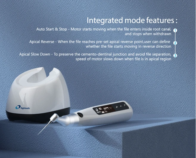 • Auto Start and Stop - Motor starts moving when the file enters inside the root canal, and stops when withdrawn