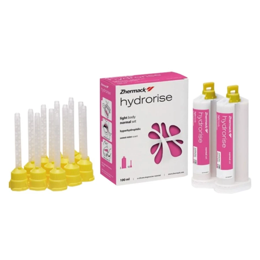 Characteristics• 99,5% elastic recovery• Dimensional stability for up to 21 days• Tear resistance• 5 micron detail reproduction• High hydrocompatibility• One of the best contact angles on the market*AdvantagesAccurate and reliable impressions: elastic recovery of nearly 100% and tear resistance help maintain the impression’s accuracy even after its removal from the oral cavityAccuracy over time: the product’s dimensional stability helps maintain impression accuracy for up to 21 daysHigh precision: Hydrorise fluids achieve 5 micron detail reproduction, are highly hydrocompatible, and have one of the best contact angles on the market.