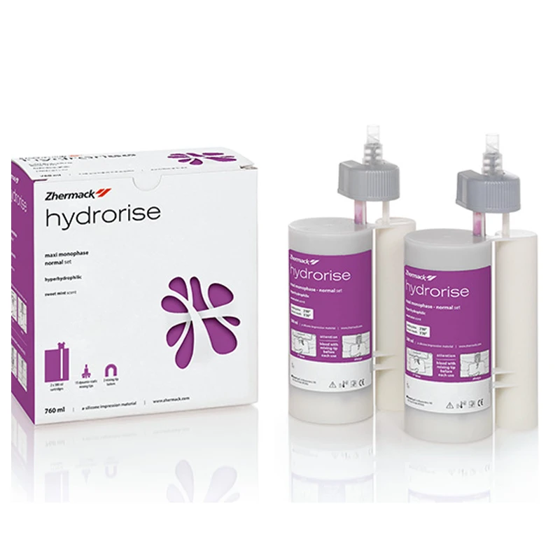 Hydrorise Monophase (mixing ratio 1:1 and 5:1) is a medium viscosity vinyl polysiloxane, recommended for the one-step technique as a single viscosity material.