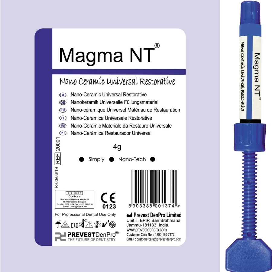 It is visible light curing composite designed for use in anterior and posterior restorations. Magma NT is a low shrinkage composite in combination of nano silica and zirconia filler.
