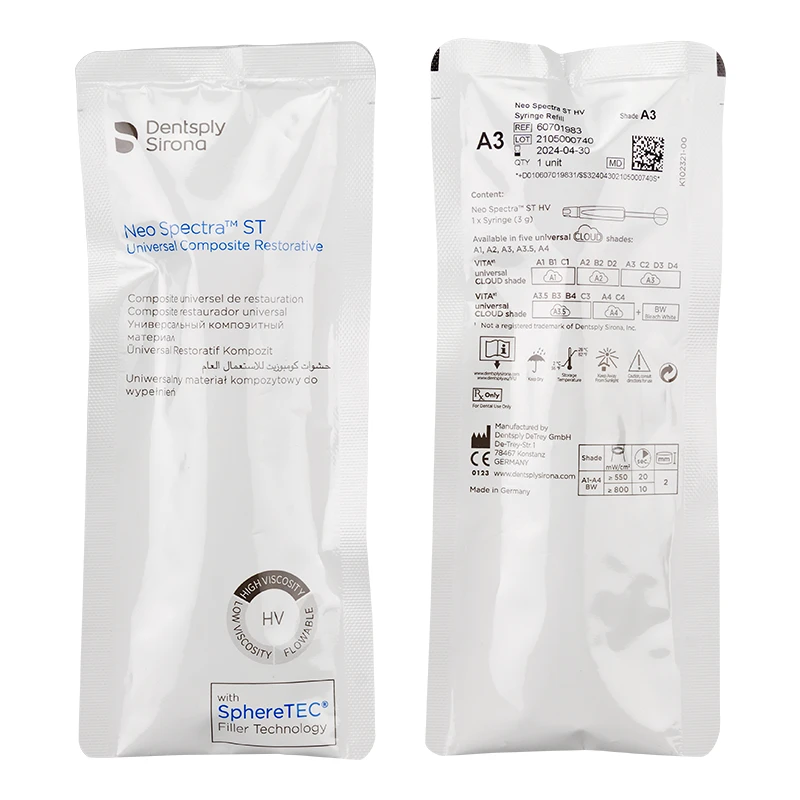 Thanks to SphereTEC filler technology, Neo Spectra ST composite offers optimized handling characteristics in both a high and low viscosity to accommodate your preference and technique for placement efficiency. SphereTEC filler brings an enhanced chameleon blending ability to Neo Spectra ST composite for simplified shade matching. It also enables fast finishing and polishes to an excellent luster.