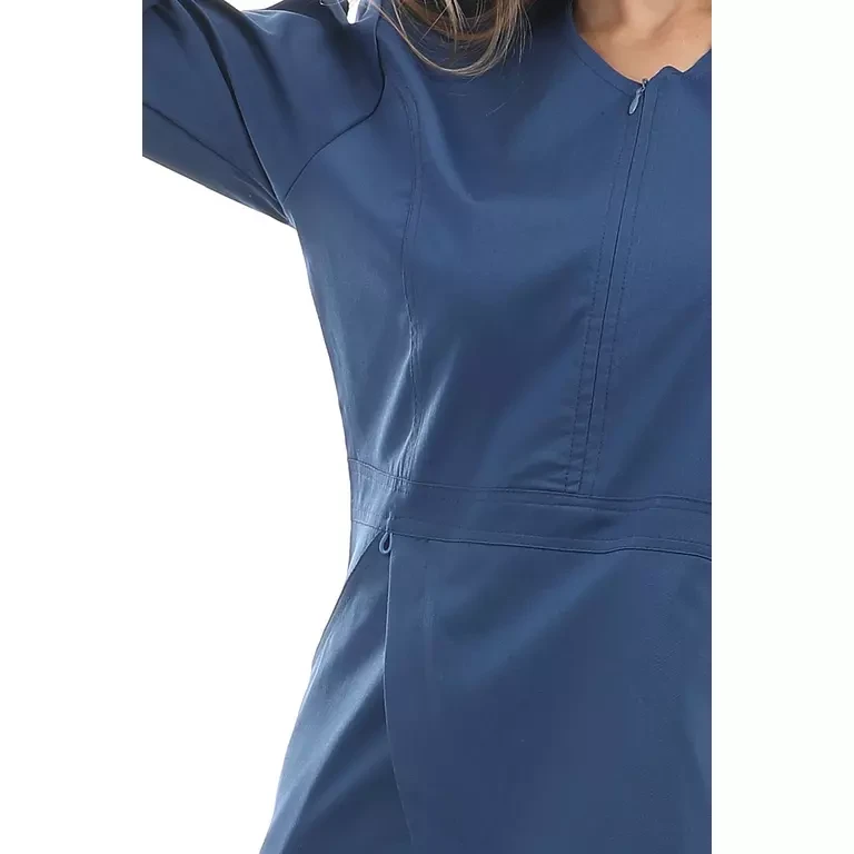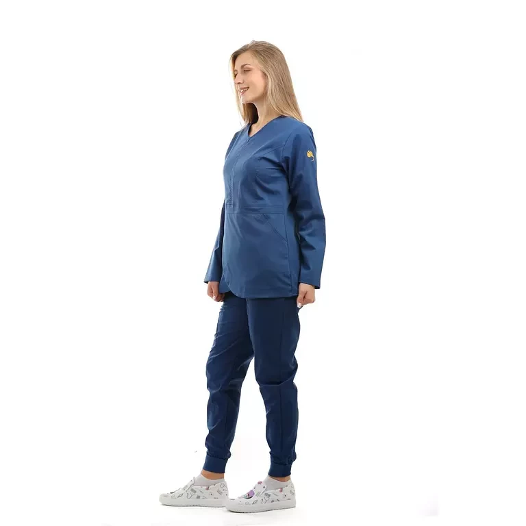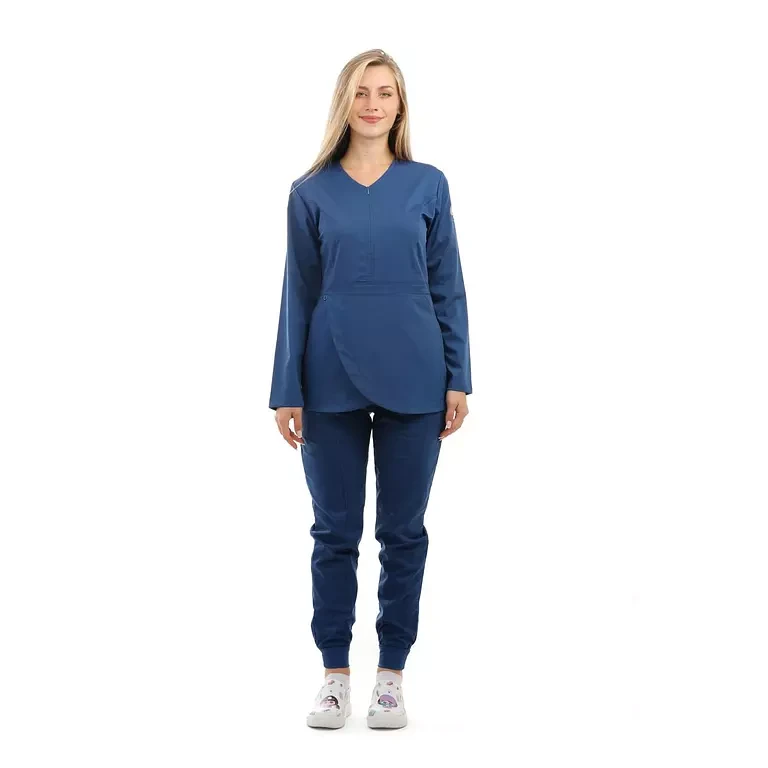 المزايا: سكراب علوي من قماش الليكرا على شكل زهرة التيوليب , جيوب امامية , سحاب على الصدر غير مرئي ,  مريح جدًا للأطباء الذين يعملون بجهد , تصميم سروال فاخر يتميز بجيبين أماميين , اساور مطاطية في القدم بشكل جمالي