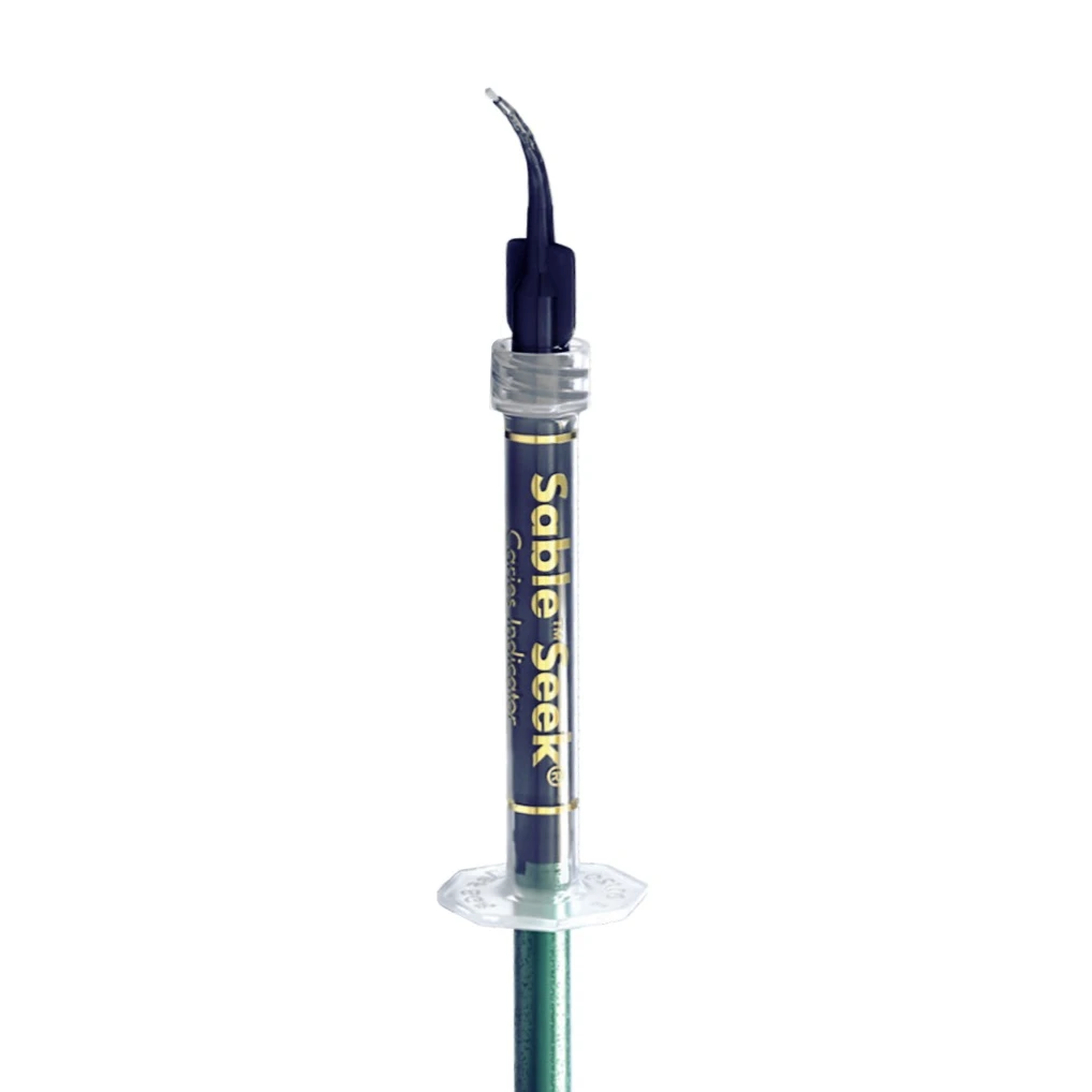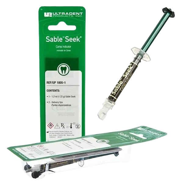 • Seek and Sable Seek caries indicators stain demineralized dentin and can be very useful for difficult to see areas, for example, undercuts of preparations, dark dentin, areas along the DE junction, etc. Green Sable Seek caries indicator helps visualization of decay in deep caries cases to help avoid pulp exposures.