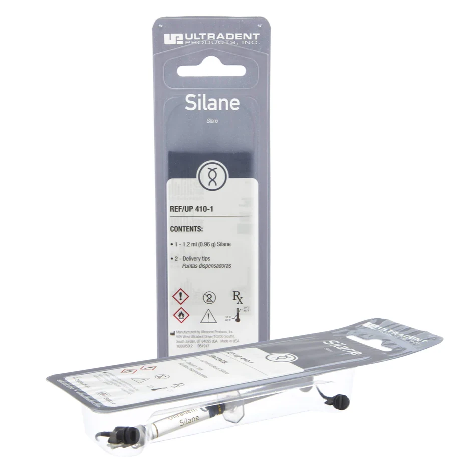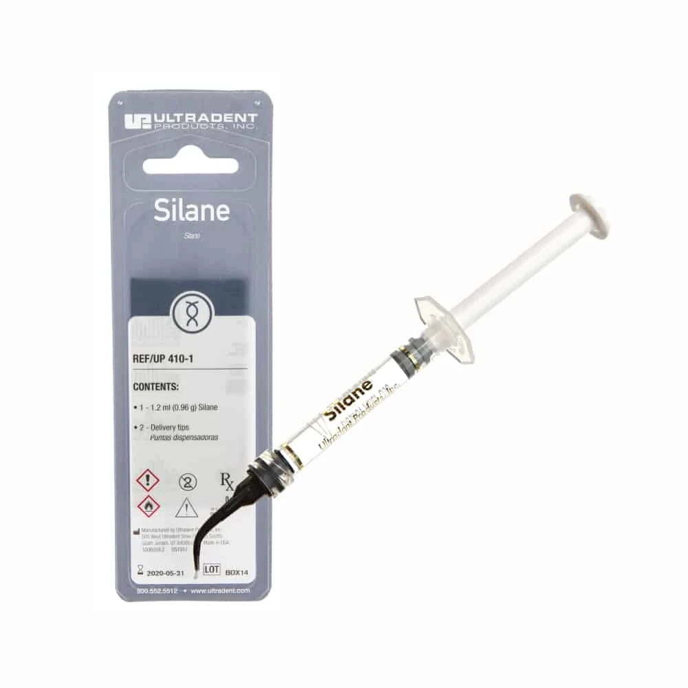 Ultradent 90-second Porcelain Etch is used to etch porcelain veneers, crowns, bridges, inlays, onlays, and fractured dental porcelain. Ultradent 60-second Silane is used after hydrofluoric acid etching to prepare the surface for bonding resin.