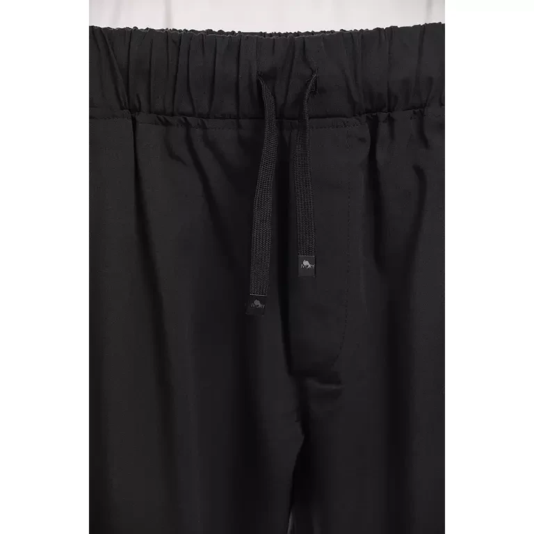 البنطلون: جوقر بحزام خصر مطاطي وأربطة. يتميز بجيوب أمامية، وجيب خلفي ، وجيوب جانبية عند الركبة، وشريط مطاطي في القدم للقدم الخامة:قماش معالج ليكرا بوليستر.