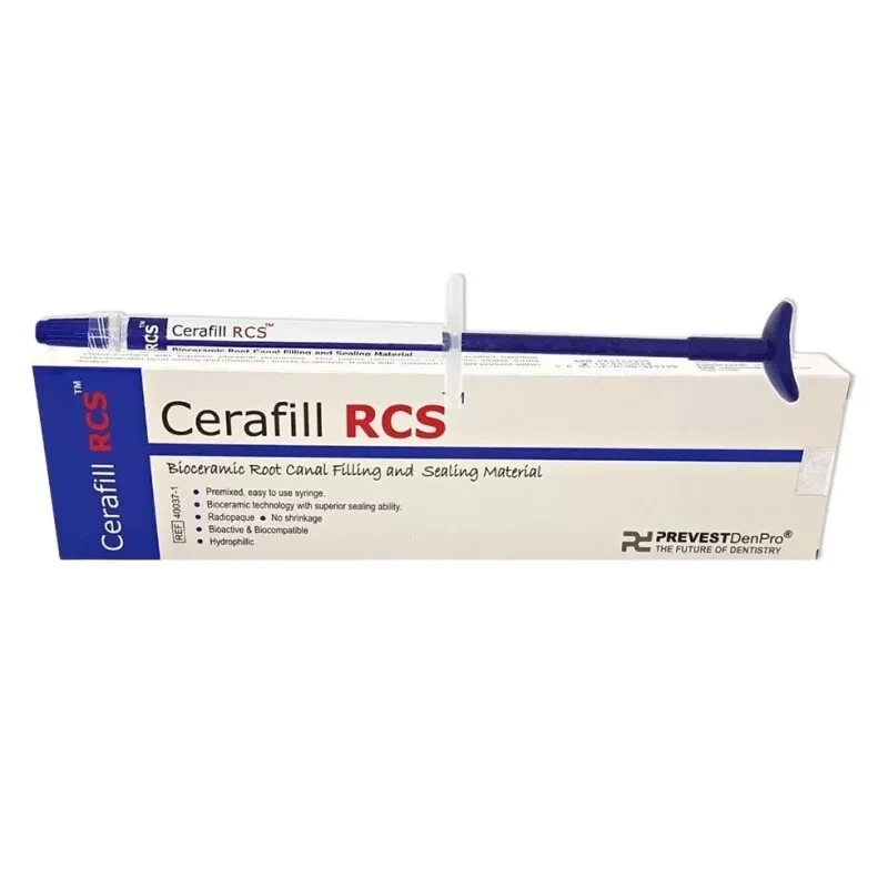 Cerafill RCS root canal filling and sealing material is a ready-to-use, injectable premixed filling and sealing material that is based on tioceramic technology. It is an alumina-free calcium silicate-based material with excellent handling characteristics and superior physical properties. It is a radiopaque material that requires water to set and harden.