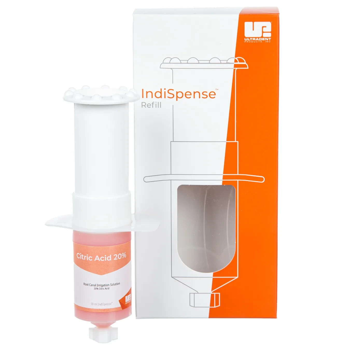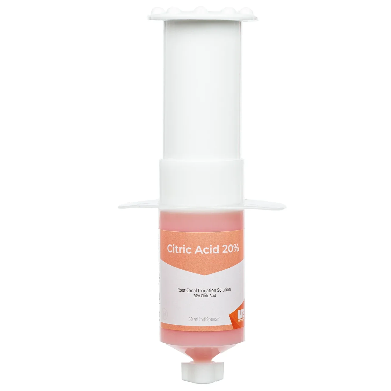 Ultradent Citric Acid is a mild acidic material that is effective at dissolving/cleaning calcium hydroxide from canals (e.g., UltraCal™ XS calcium hydroxide paste). It is also recommended as a cleanser/conditioner to remove smear layer from dentinal walls. Deliver with the NaviTip™ tip or the NaviTip™ FX™ tip.
