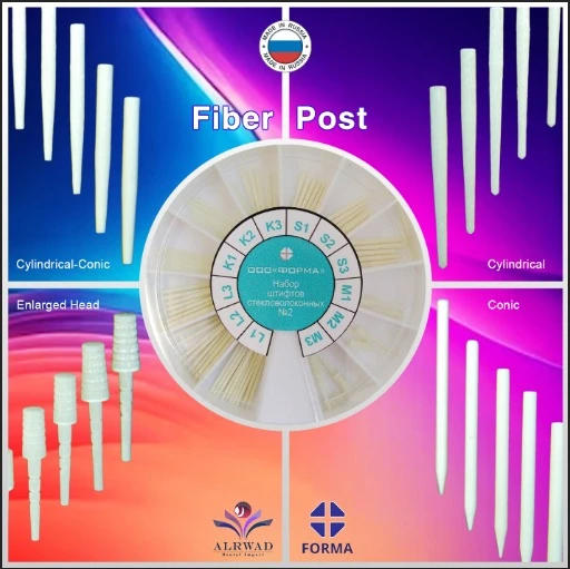 Glass fiber pins are distinguished by their special strength, durability, elasticity, as well as light transmission and radiopacity. They are widely used in aesthetic restoration of teeth. They are developed and manufactured in accordance with modern trends in the dental industry and traditional quality standards. Kit contains: - 10 x Fiber post L1. - 10 x Fiber post L2. - 10 x Fiber post L3. - 6 x Fiber post K1. - 6 x Fiber post K2. - 6 x Fiber post K3. - 6 x Fiber post S1. - 6 x Fiber post S2. - 6 x Fiber post S3. - 3 x Fiber post M1. - 3 x Fiber post M2. - 3 x Fiber post M3.