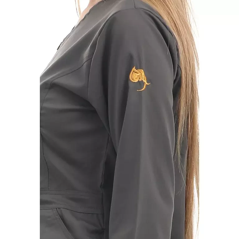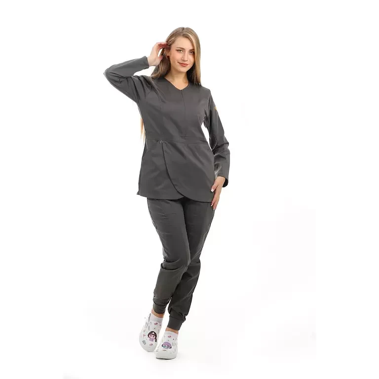 المزايا: سكراب علوي من قماش الليكرا على شكل زهرة التيوليب , جيوب امامية , سحاب على الصدر غير مرئي ,  مريح جدًا للأطباء الذين يعملون بجهد , تصميم سروال فاخر يتميز بجيبين أماميين , اساور مطاطية في القدم بشكل جمالي