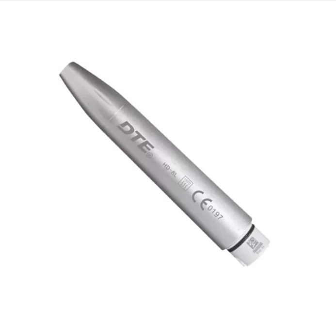 Hand Scaler DTE Metal Fiberoptic. Specifications: - Scaler Tip Type: DTE, Acteon, Satelec. - Hose Connection Type: Satelec LED. - Light / Optic: Yes, LED. - Detachable handle. - Piezo. - Quality Guaranteed. - Autoclavable