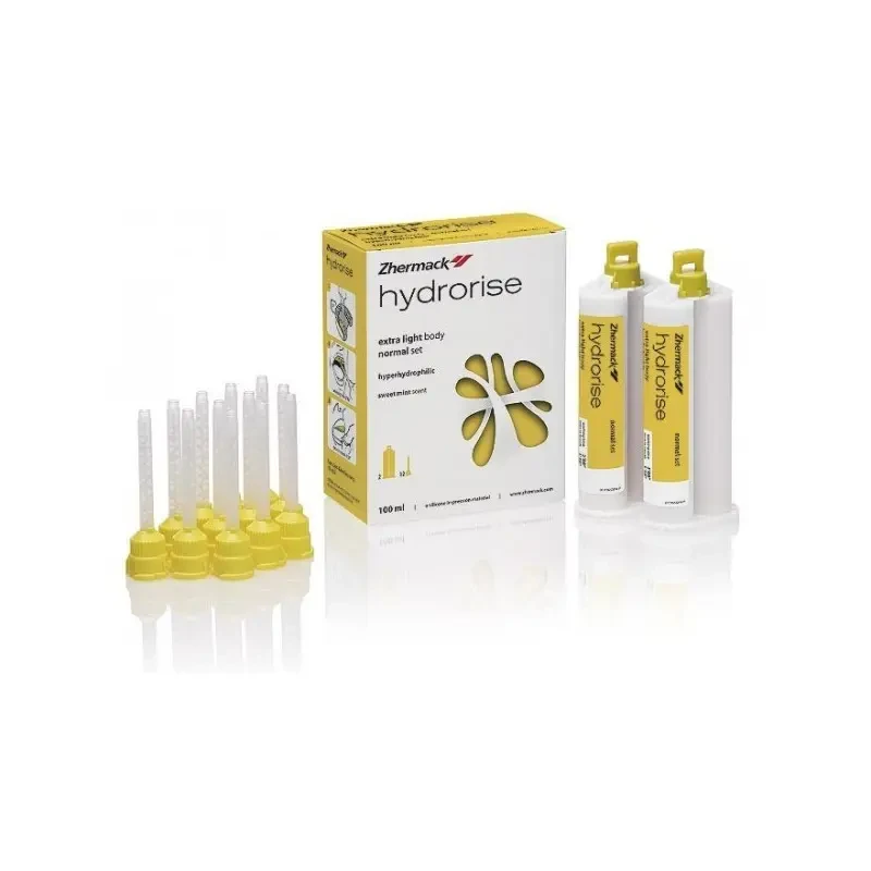 • 99,5% elastic recovery*• Dimensional stability for up to 21 days• Tear resistance• 5 micron detail reproduction• High hydrocompatibilityAdvantages• Accurate and reliable impressions: elastic recovery of nearly 100% and tear resistance help maintain the impression’s accuracy even after its removal from the oral cavity• Accuracy over time: the product’s dimensional stability helps maintain impression accuracy for up to 21 days• High precision: Hydrorise fluids achieve 5 micron detail reproduction, are highly hydrocompatible, and have one of the best contact angles on the market.Country of Origin: Italy