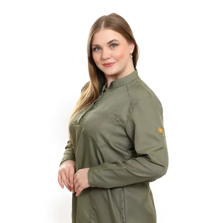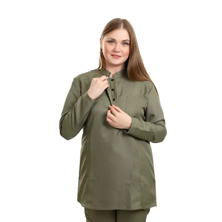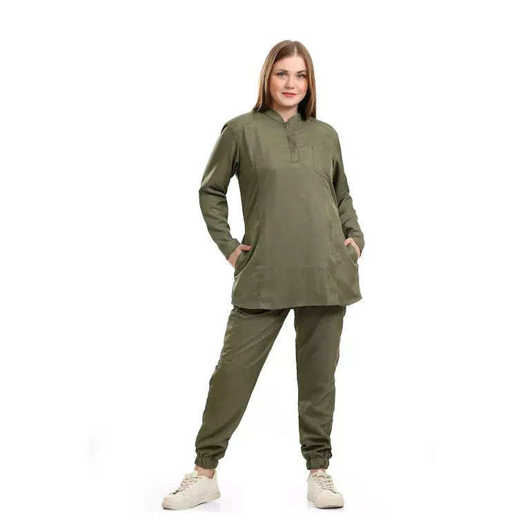 Name: Olive Female Half Collar Scrub (Full Sleeves)