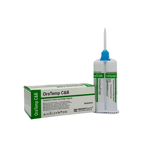 OraTemp C&B (crown and bridge material) is a composite material for the fabrication of temporary restorations. Based on multi-functional methacrylate esters, this two-component system has filling material-like properties. With the help of a dispensing gun, the material can be applied directly from the cartridge without causing any bubbles to form Oratemp temporary restorations.