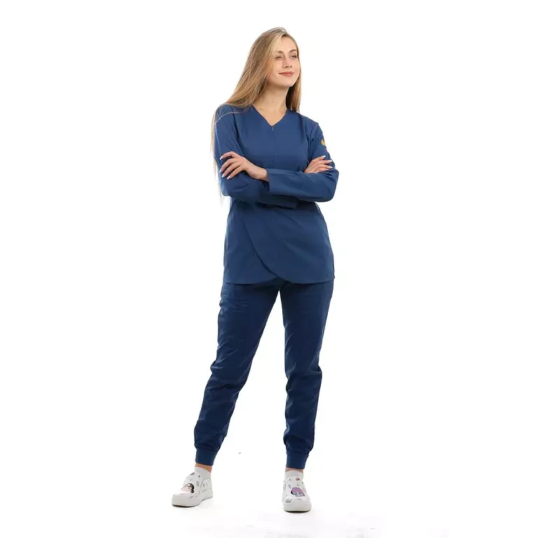 المزايا: سكراب علوي من قماش الليكرا على شكل زهرة التيوليب , جيوب امامية , سحاب على الصدر غير مرئي ,  مريح جدًا للأطباء الذين يعملون بجهد , تصميم سروال فاخر يتميز بجيبين أماميين , اساور مطاطية في القدم بشكل جمالي
