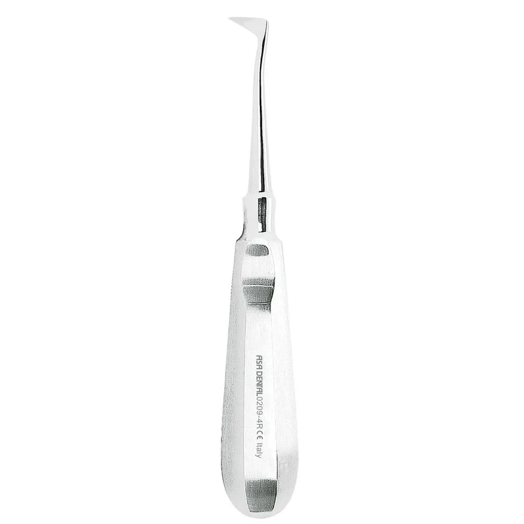 This instrument helps dentists gently loosen tooth roots for easier extraction without damaging the surrounding gums or bone structure.