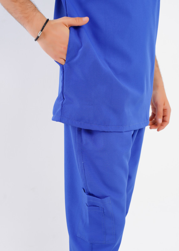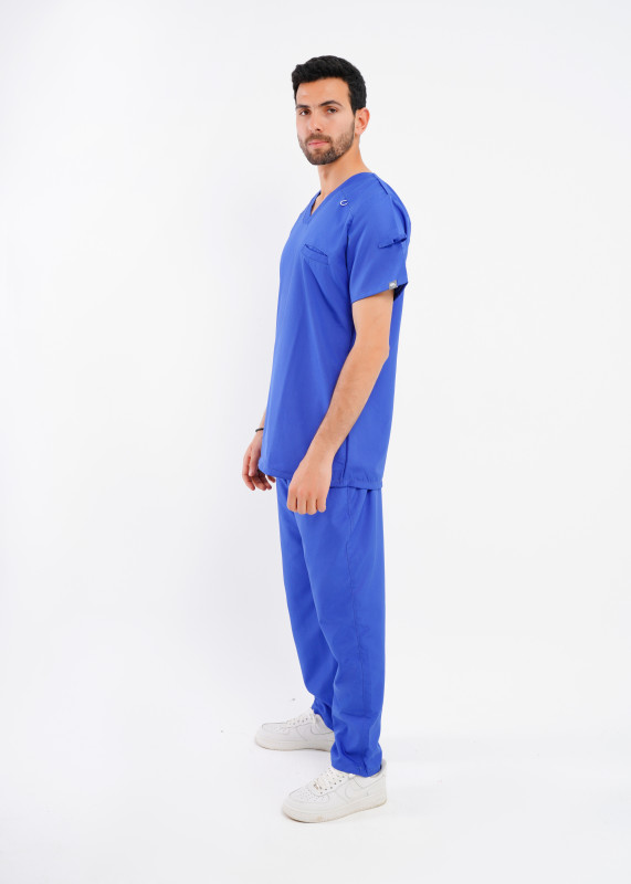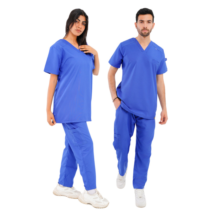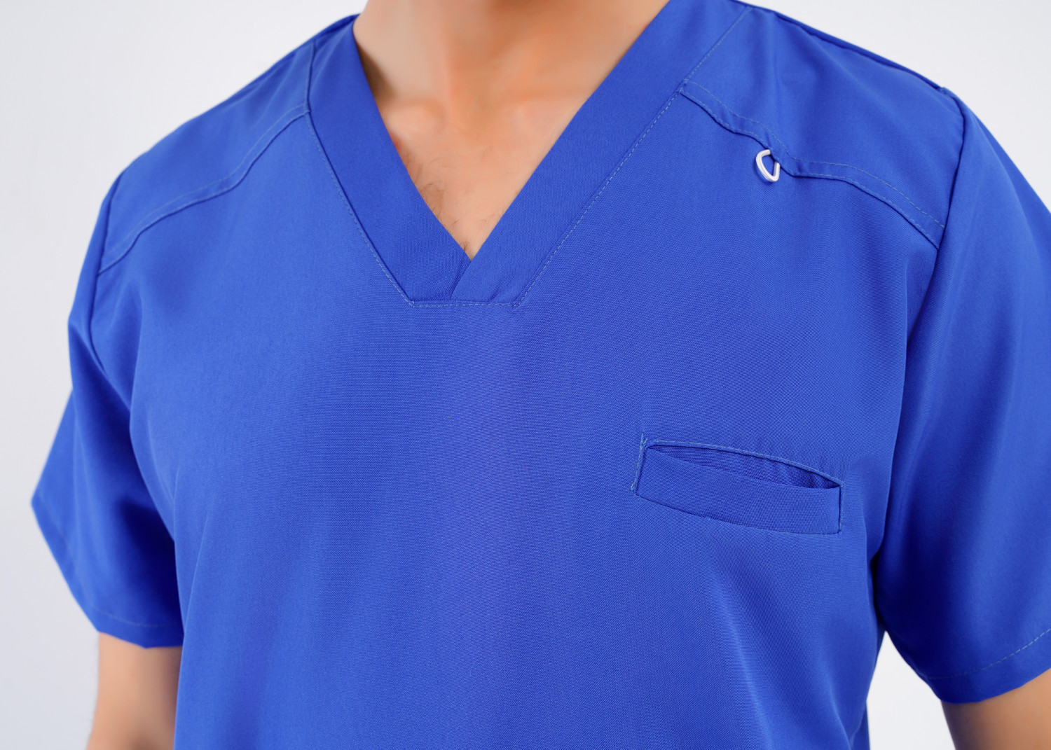 على شكل حرف V، يتميز برقبة على شكل حرف V، وأكمام قصيرة، وجيب أمامي على الصدر ،