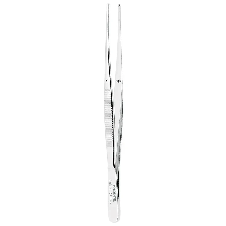 A tissue forceps, also known as a tissue plier, is an essential dental and surgical instrument used to gently grasp and manipulate soft tissues, such as gums and oral mucosa, during various dental procedures.