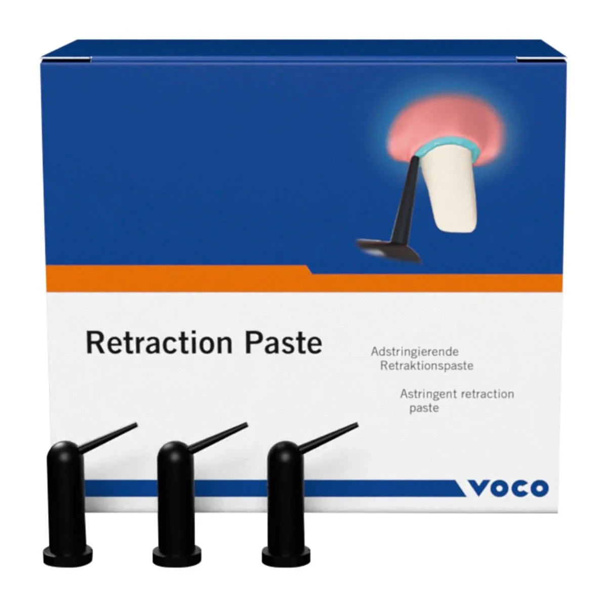Voco Retraction Paste is an astringent paste for effective temporary widening and drying of the gingival sulcus.